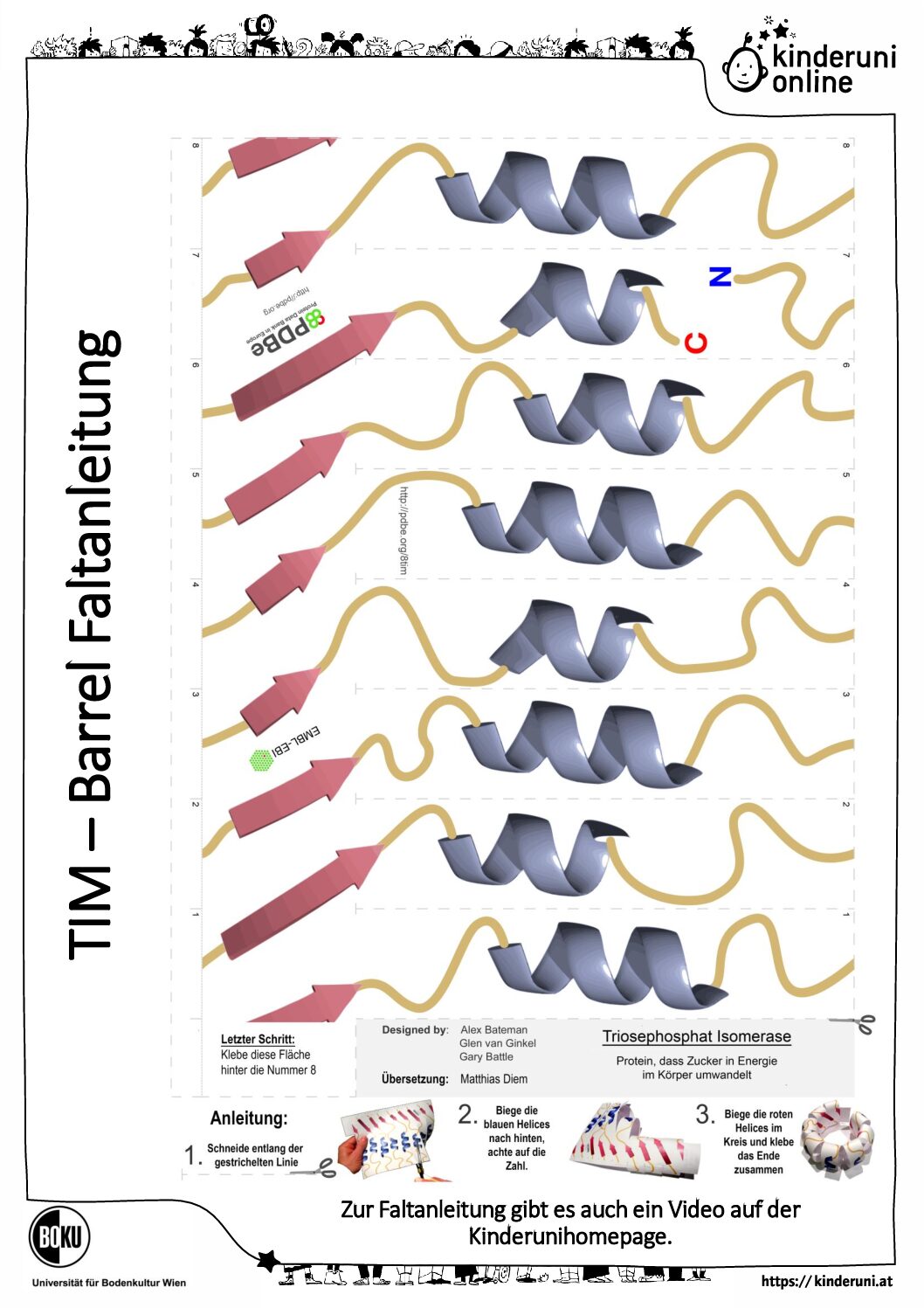 Mit dieser Faltvorlage kannst du dein eigenes TIM-Barrel Protein basteln. Die Faltanleitung findest du im Video.